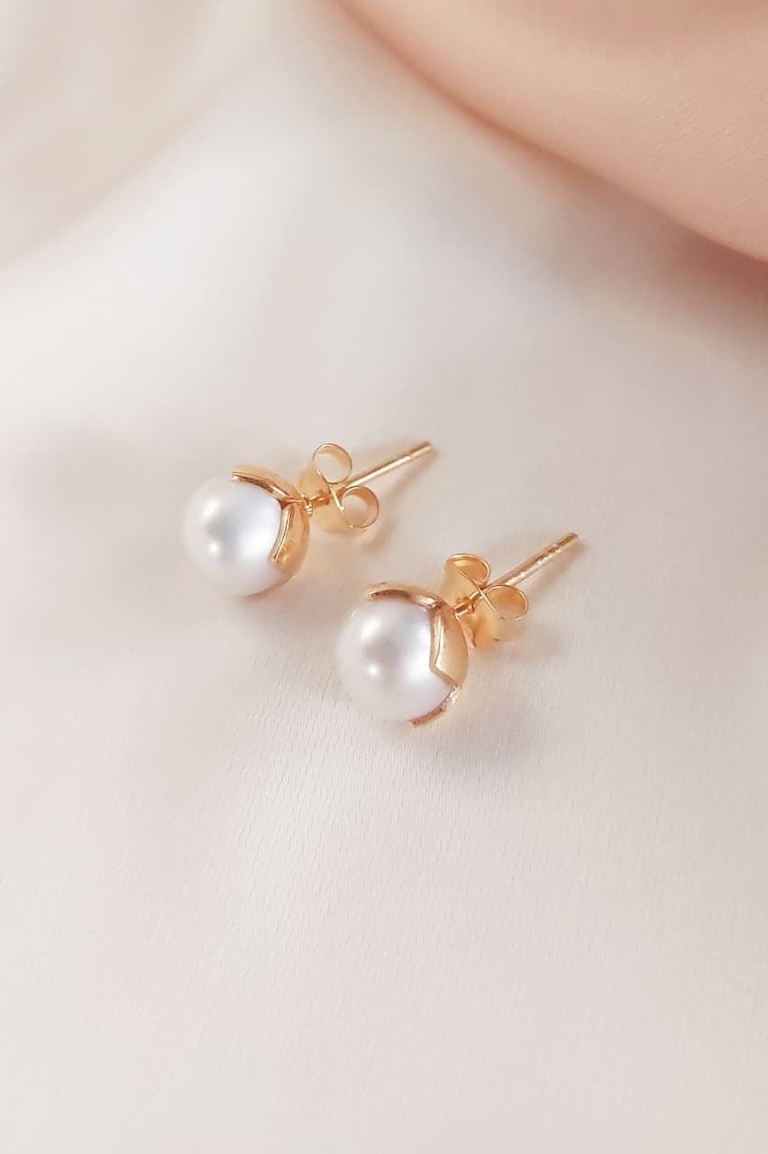 MAWAR Stud Earrings are a celebration of timeless elegance, handcrafted in Bali with devotion and artistry. Made from 926 sterling pure silver and luxuriously coated in 24K gold vermeil, each earring embraces a luminous white sea organic pearl at its center. What makes this design truly special is the golden cover around the pearl, shaped delicately to resemble the petals of a blooming rose (mawar in Indonesian). This detail gives the earrings a classic and romantic charm, making you feel both calm and lovely, whether you wear them for a special day or as a touch of grace in your daily life.